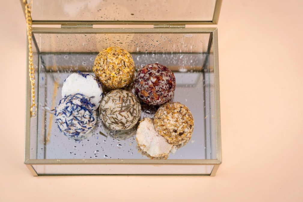 Koule vedle dalších prospěšných složek obsahují také bambucké a kakaové máslo, čímž zajišťují pokožce důslednou hydrataci a dodávají jí vitamín E.