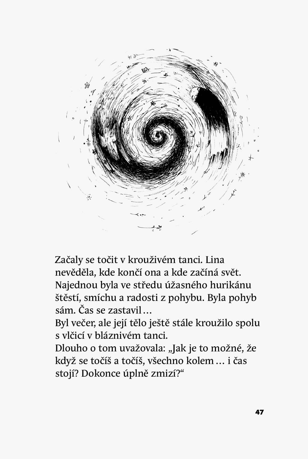 Je to příběh o naší osamělosti. O porozumění a překonání strachu. O tom, že opravdová láska znamená nechat tomu druhému prostor pro svobodné rozhodování. Je o tanci ve větru a o naslouchání hlasu stromů. O splynutí s řekou. O slunci v srdci, když nebe zatáhnou mraky smutku. O tom, že naše duše je veliká jako les, kde každá živá bytost má své místo. O dovádění a také o tom, čeho jsme se tak báli, neboť jsme ještě nerozuměli…
