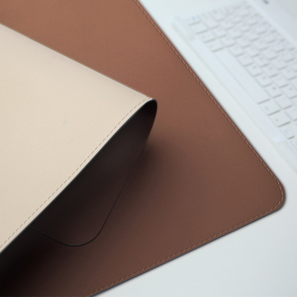 Oboustranná podložka pod myš a klávesnici MOSH kožená, šedo bílá / čokoládová, 70 x 35 cm Medium (70 x 35 cm)