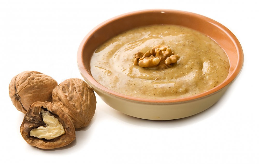 Omáčka na těstoviny z vlašských ořechů a kešu oříšků typické pro Ligurii.