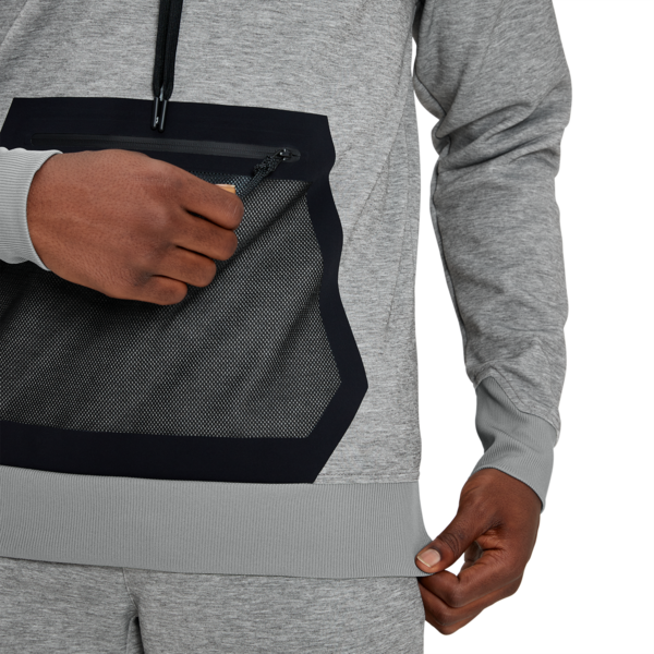 Toto je jediná mikina, ktorú skutočne potrebujete. Mikina je ušitá zo zmesy recyklovaných, technických a prírodných materiálov, ktoré jej dávajú ľahkosť a zároveň sú veľmi príjemné na dotyk. Vďaka tomu vás udrží v pohodlí pred tréningom a spríjemní regeneráciu po jeho skončení. Design tejto mikiny je inšpirovaný obuvov On - preto na hrudi nájdete špeciálne pútko, vďaka ktorému vás pri pohybe nebudú rušiť šnúrky. Všetko dôležité môžete uschovať do prednej kapsy na zips.
