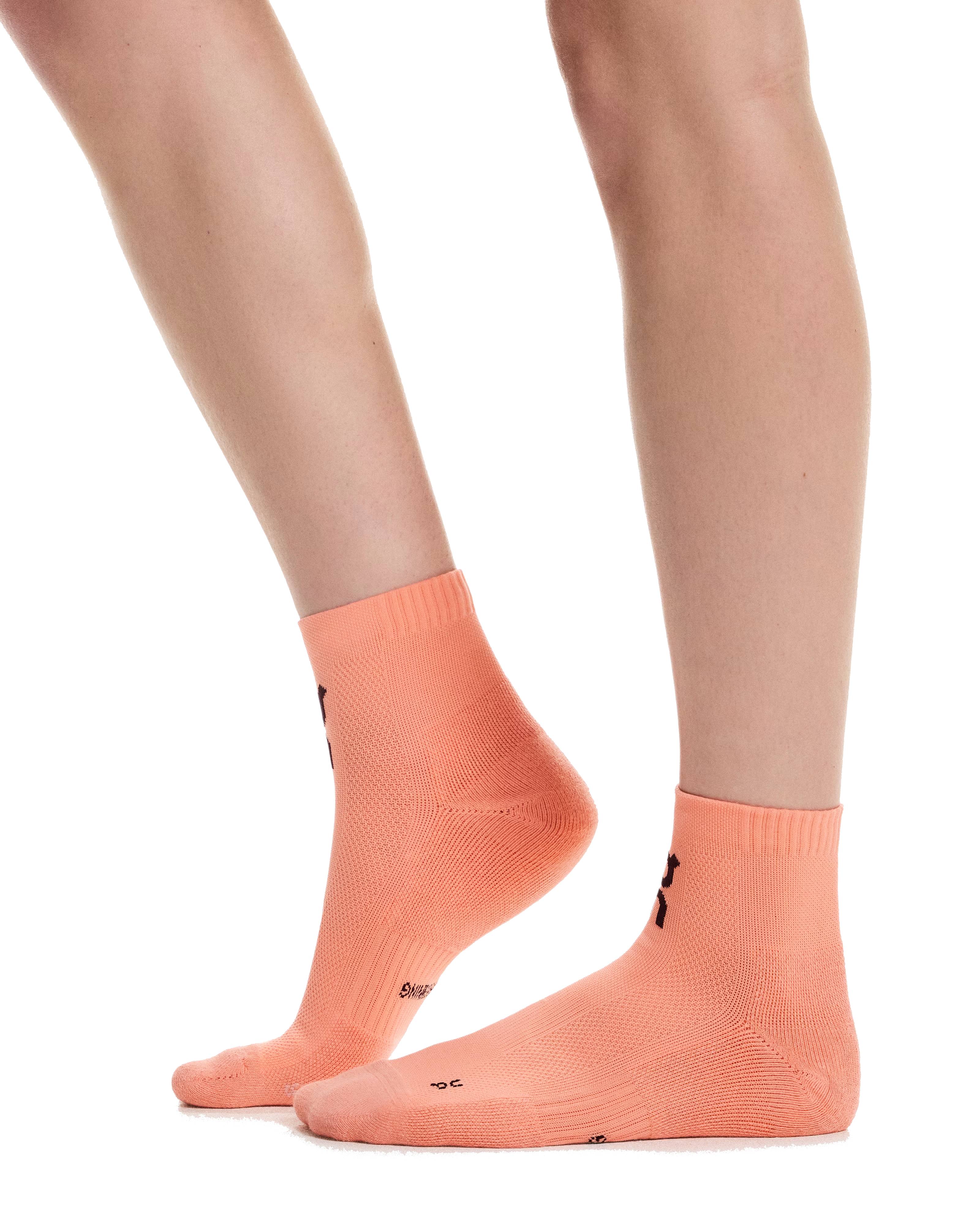 Ponožky Core Run Sock Mid sú navrhnuté tak, aby poskytovali spoľahlivú oporu, komfort a priedušnosť počas každého behu. Vďaka kombinácie organickej bavlny, recyklovaného polyesteru a elastanu ponúkajú príjemný pocit na nohe, optimálnu elasticitu a zároveň dobrú odolnosť pri pravidelnom používaní. Špeciálna konštrukcia s maximálnym tlmením v oblasti chodidla pomáha znižovať nárazy pri behu a zvyšuje celkový komfort. Ventilačné panely po stranách podporujú cirkuláciu vzduchu a pomáhajú udržiavať nohy suché aj pri intenzívnej aktivite. Integrovaná opora klenby stabilizuje chodidlo a zlepšuje pocit istoty pri pohybe. Stredne vysoký strih (mid-cut) spolu s rebrovaným lemom zabezpečuje, že ponožky dobre držia na mieste bez nepríjemného skĺzavania. Balenie obsahuje dva páry, takže budete mať vždy pripravený ďalší pár na ďalší tréning.