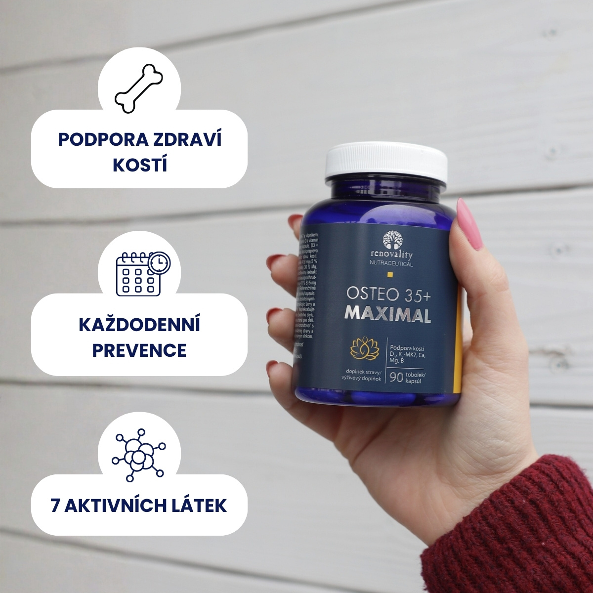 OSTEO 35+MAXIMAL – All-in-ONE pro vaše kostiPo 35. roce života začíná klesat hustota kostí. U žen přichází období hormonálních změn, u mužů klesá produkce kolag…
