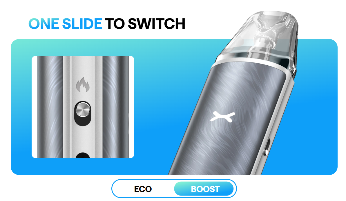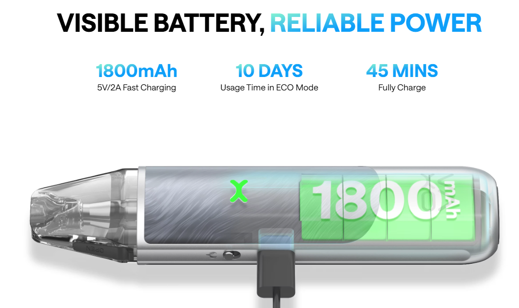 Tato funkce umožňuje rychle a bezpracně přepínat mezi úsporným MTL vapováním s delší výdrží na jedno nabití a RDL, kdy oceníte teplejší a bohatší páru. Samozřejmostí jsou standardní ochranné prvky, možnost pouze žhavení potahem a také rychlé nabíjení zabudované 1800mAh baterie.