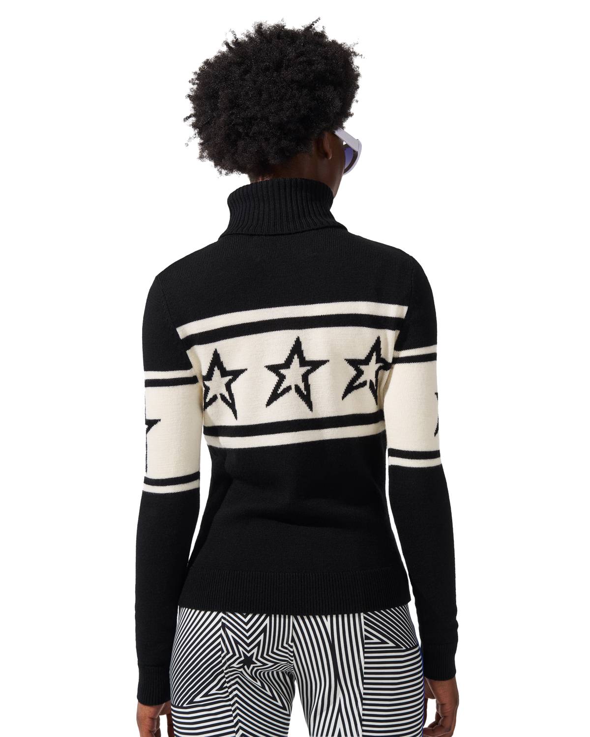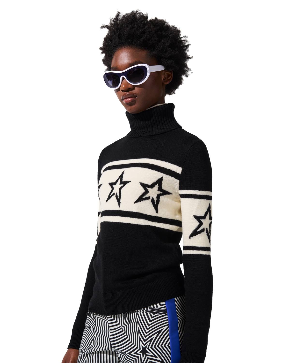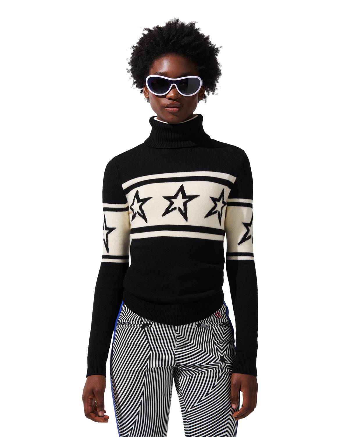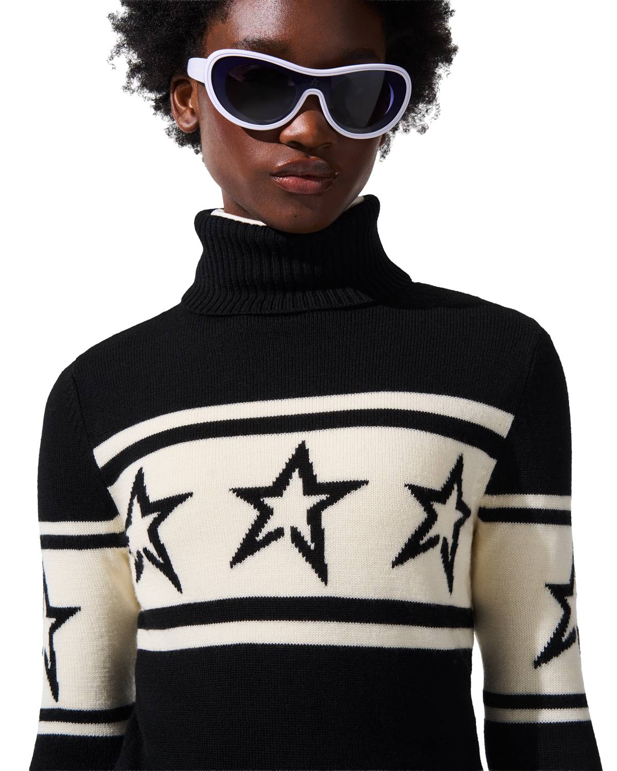 Sveter Chopper Sweater patrí medzi bestsellery značky Perfect Moment a je vyrobený zo 100 % merino vlny s certifikáciou Woolmark, čo zaručuje mimoriadnu jemnosť a komfort. Priliehavý strih s dĺžkou po boky a vysokým rolákom poskytuje elegantný a teplý zimný vzhľad. Rebrované manžety a lem zadržiavajú teplo, zatiaľ čo charakteristický logo hviezda intarzia na prednom diele dodáva ikonický štýl. Ideálny kúsok na vrstvenie pod bundy alebo samostatne na après-ski.
