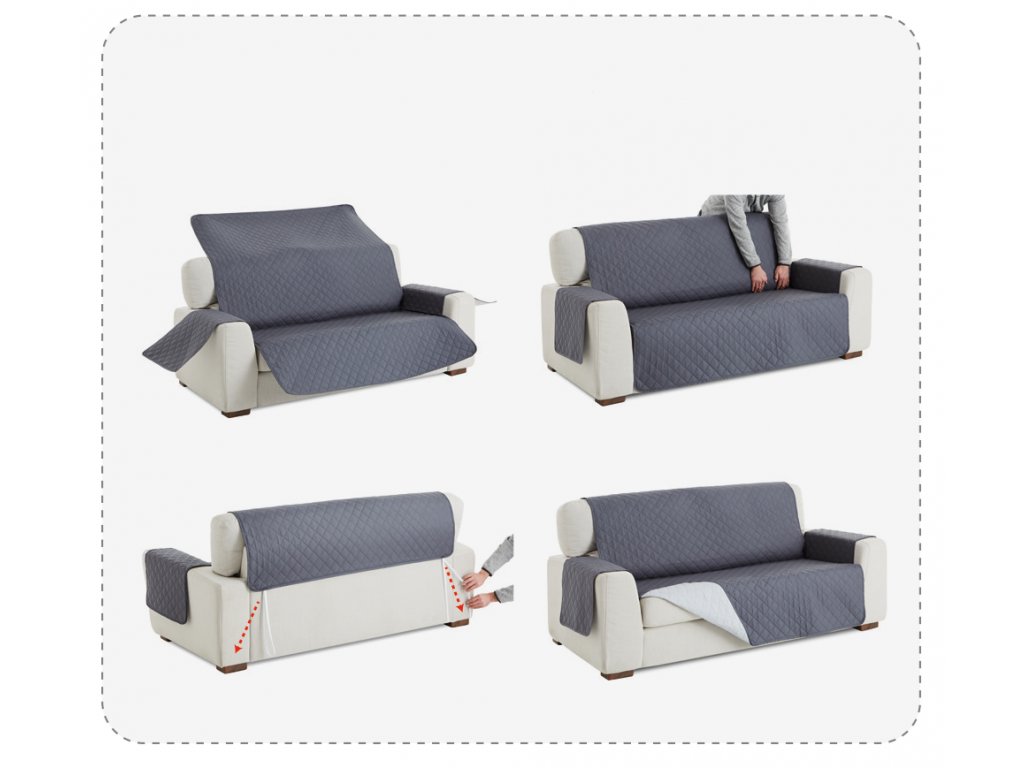 Oboustranný potah na sedačku je speciálně navržen tak, aby dokonale seděl na sedačce a zůstával na místě. Potah se skládá z jednoho kusu látky, který má na každé straně odlišnou barvu, takže můžete jednoduše změnit vzhled své sedačky podle nálady nebo sezóny.