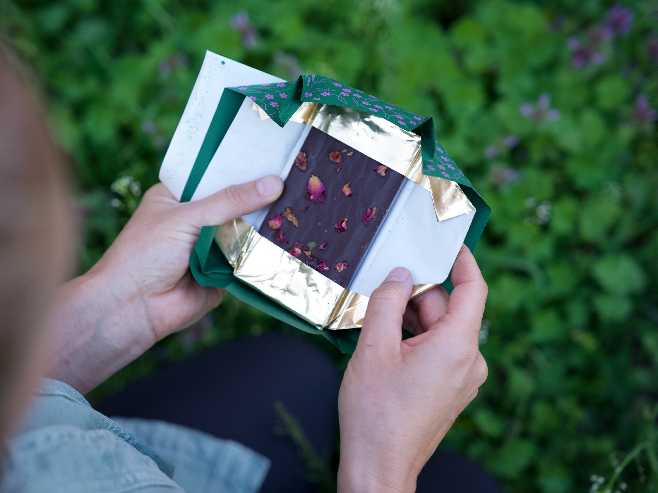 | Složení | bio kakaové boby, bio sušená třtinová šťáva, bio kakaové máslo, bio vanilka, sušené květy růže |