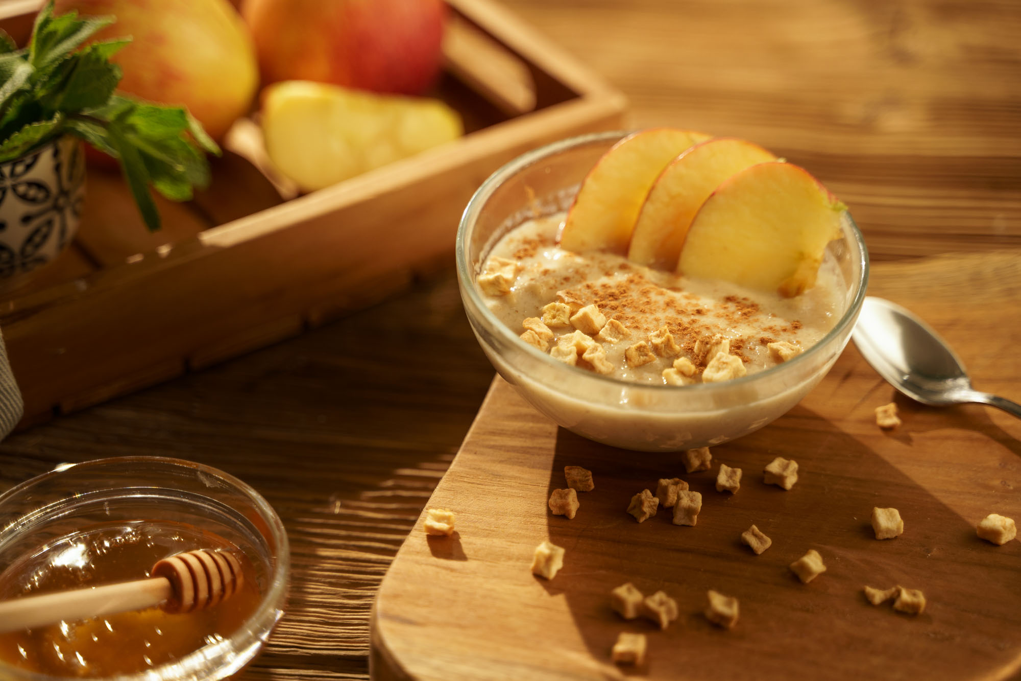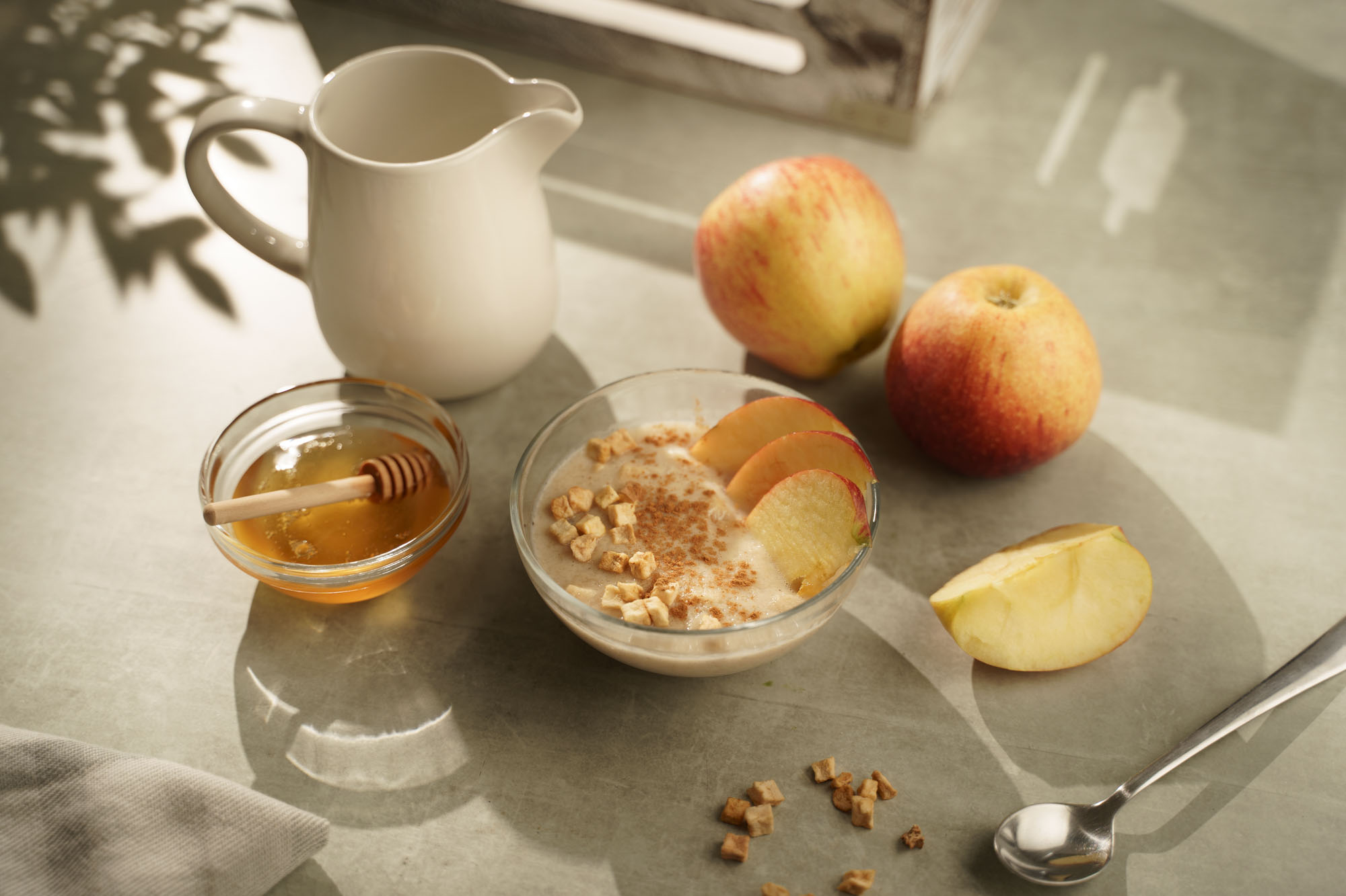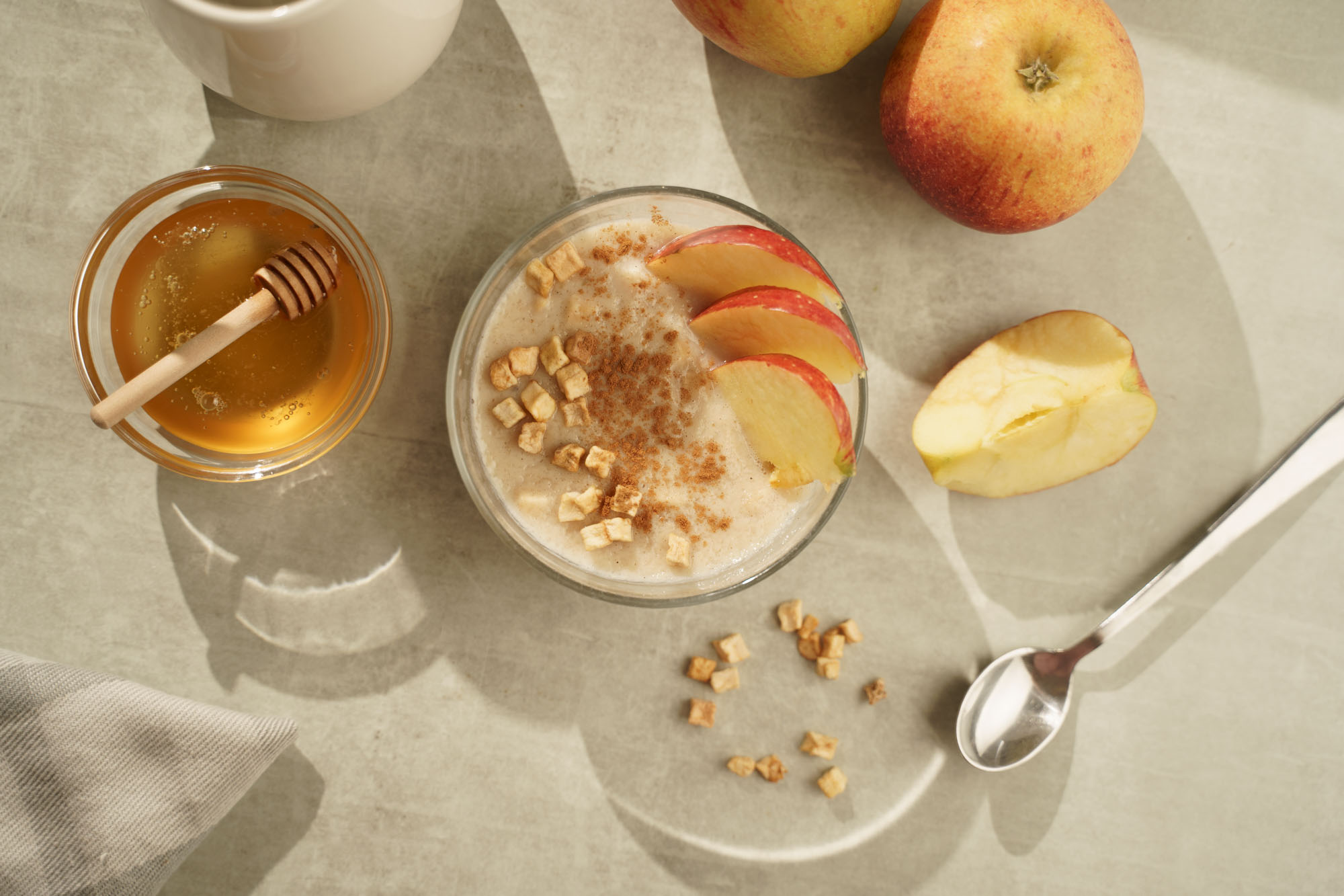 Drobné kousky sušených jablek + hřejivá skořice. Ranní kaše bez přidaného cukru. Jablečná a žádná jiná!