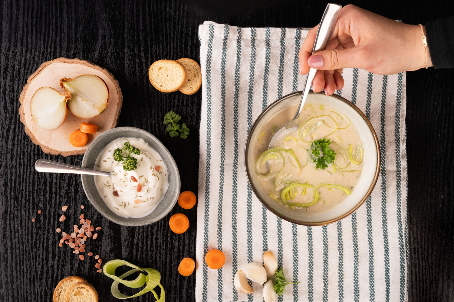 Pořádně hustá česnečka na poctivém zeleninovém základu. Dodá vám kupu bílkovin, bez glutamátů a barviv.