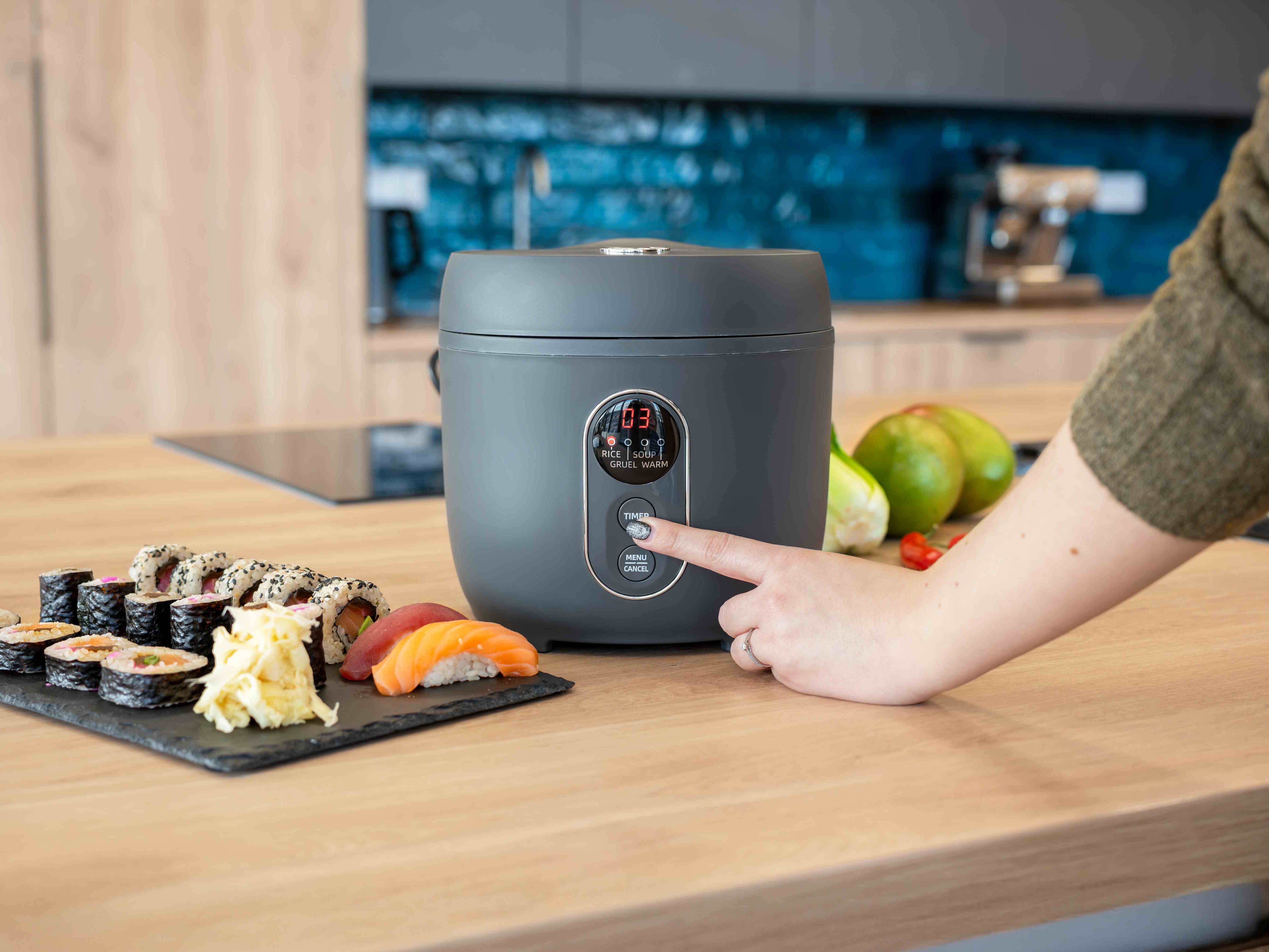 Rýžovar Remoska® Maria s objemem 0,8 l nabízí 4 programy – uvaří rýži, připraví jemnou rýžovou kaši nebo chutnou polévku. Přehledný digitální displej s odpočtem času vám usnadní kontrolu nad vařením, zatímco odložený start až o 12 hodin zajistí, že jídlo bude hotové přesně ve chvíli, kdy budete potřebovat. Navíc Rýžovar Remoska® Maria můžete snadno sladit do celé kolekce Maria, která propojuje funkčnost a elegantní design do jednotného stylu kuchyně.