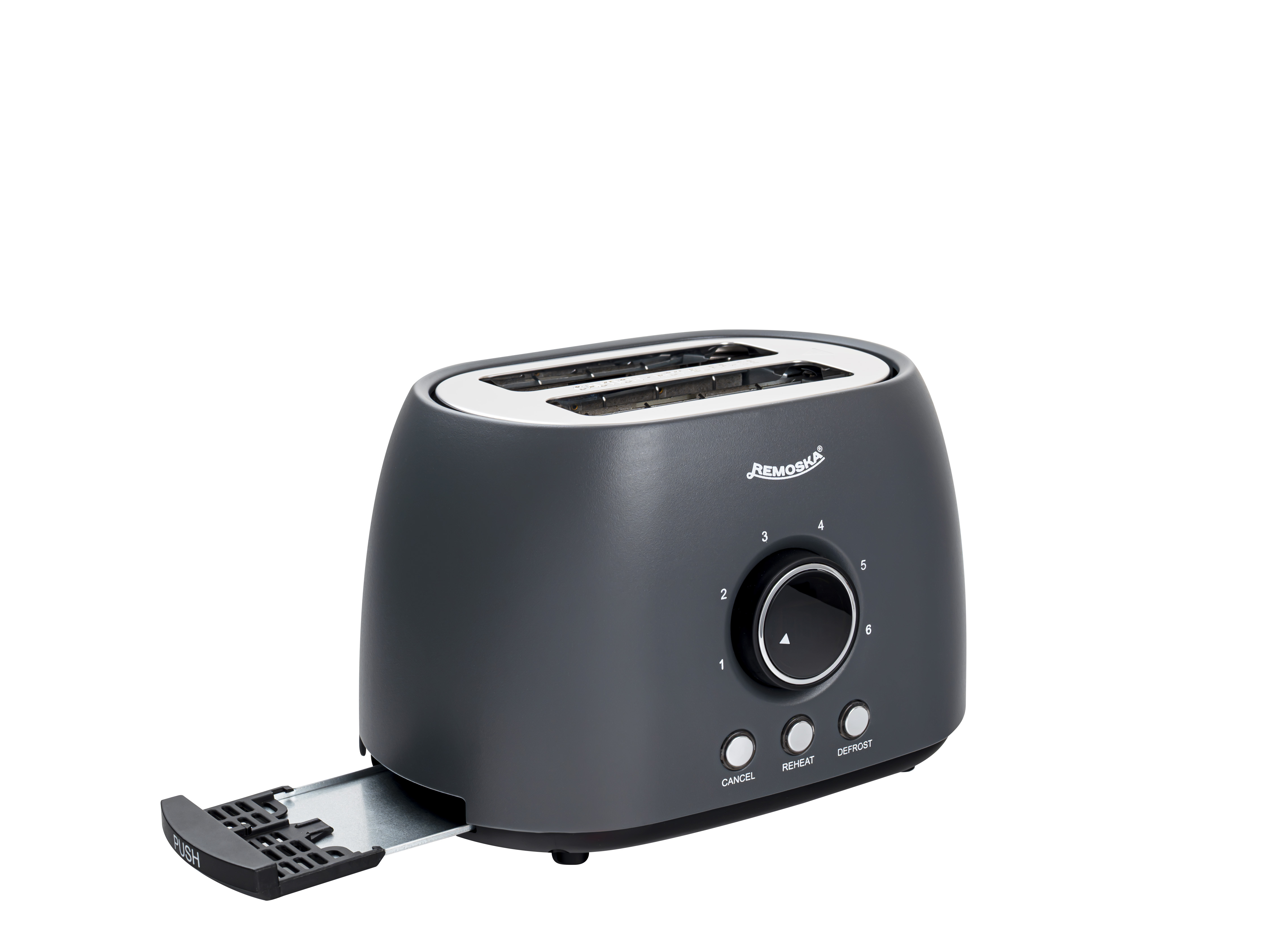Topinkovač Remoska® Maria nabízí 6 úrovní opečení a 3 chytré funkce – tlačítko pro okamžité zastavení opékání, funkci rozmrazování pro přípravu pečiva přímo z mrazáku a také ohřev už jednou opečeného toastu.