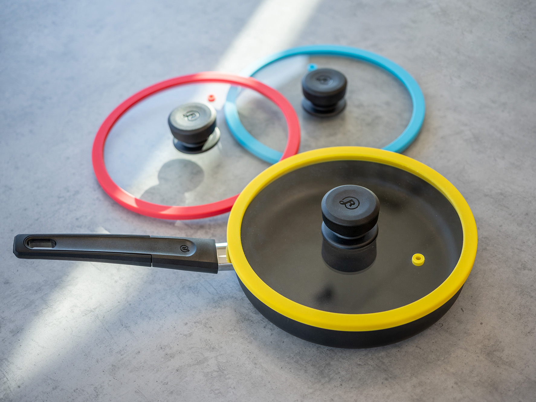 Skleněná poklice je vyrobena z tvrzeného bezpečnostního skla, které je po obvodu opatřeno silikonovým těsněním. Speciální profil okraje poklice je šetrný k okrajům hrnce a zároveň přirozeně reguluje množství odváděné páry z hrnce. Společně s regulační dírkou umožňuje vařit zdravě s malým množstvím vody. Poklice je odolná teplotám do 220°C.
