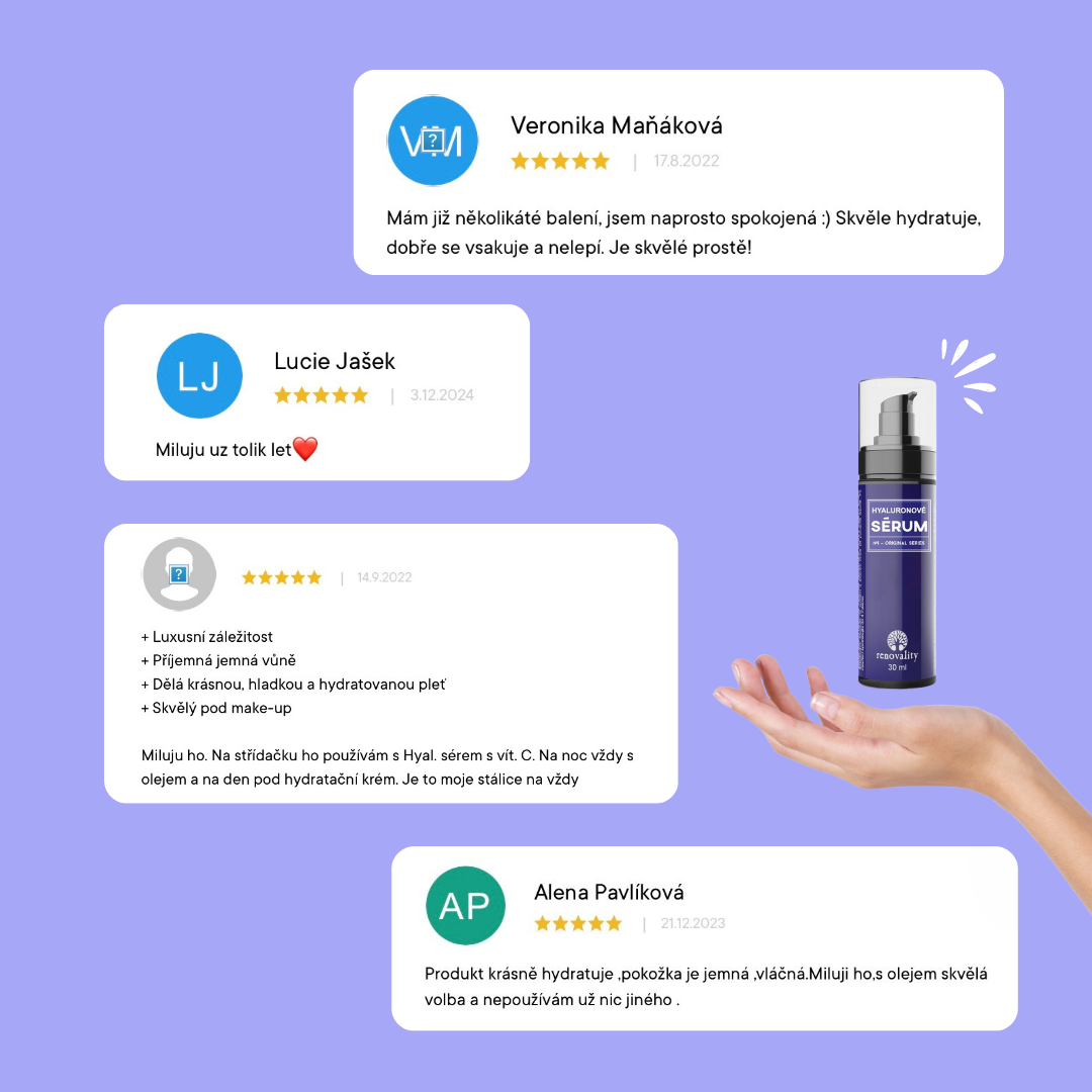 Naše hyaluronové sérum je klíčem k vaší mladistvé pleti!5x vítěz v soutěži Produkt Roku na Heureka!Lehké gelové sérum je vaším nejlepším spojencem v boji za hyd…
