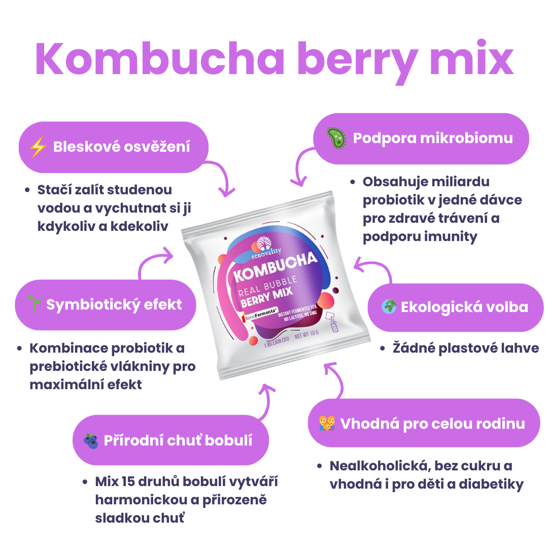 Kombucha Real Bubble Berry MixObjevte revoluční způsob, jak si vychutnat osvěžující kombuchu kdekoliv a kdykoliv.Zažijete šumivou explozi chuti a prospěšných lá…