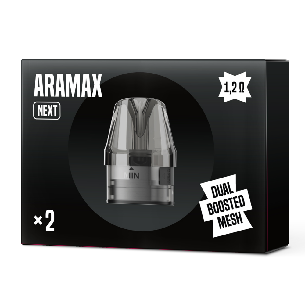 Originální náhradní cartridge pro elektronickou cigaretu Aramax Next POD. Žhavící hlava z kanthalového meshe o odporu 1,2 Ω je konstruována pro výtečnou chuť a silný nikotinový "kick". Cartridge z PCTG plastu pojme až 2ml e-liquidu a její přívod vzduchu je regulovatelný. Novinkou je pak boční plnění uzavíratelné gumovou záslepkou.