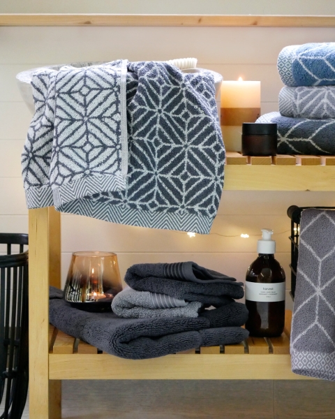 Ručníky DESIGN RAUTE, 009 (anthrazit) tmavě šedá, více rozměrů, Framsohn spojují výrazný kosočtvercový motiv s precizním rakouským zpracováním. Geometrický vzor…