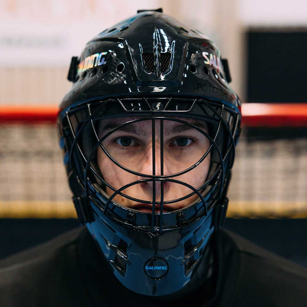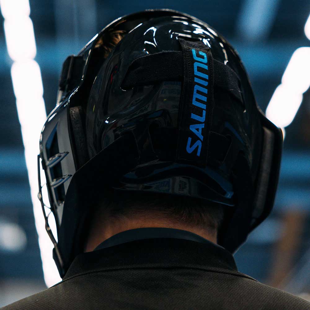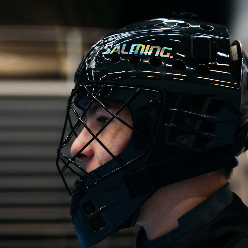 Profesionální florbalová brankářská helma Salming Phoenix Elite Helmet v černé lesklé variantě. mřížka má tzv. CatEye vzor zadní část masky je nastavitelná, tak…