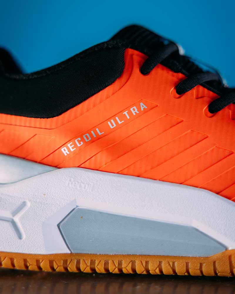 Bytelný svršek je tvořen ze dvou vrstev, které se vhodně doplňují. Základní polyesterový úplet bot je z 90 % překrytý několika polyuretanovými funkčními prvky, které mají především ochrannou a stabilizační funkci. Zejména boční stabilizační prvky jsou konstruované tak, aby vás sálovky maximálně dobře podržely, i pokud patříte mezi těžší hráče. Pro pocit skutečného pohodlí je vnitřní strana polyesterového úpletu změkčená a působí až semišovým dojmem. Velmi důležitým prvkem, který konstrukce svršku modelu Recoil Ultra nabízí, je asymetrické šněrování, které ideálně podporuje biomechanické pohyby chodidla v rámci potřeb sálových sportů.