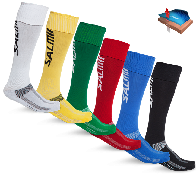 Anatomické sportovní stulpny využívající Salming CoolFeel technologii. Provedení podporující cirkulaci vzduchu. Absorbují nárazy a snižují riziko vzniku otlaků.