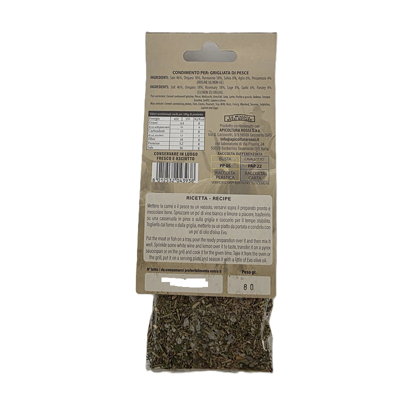 Směs koření na na ryby Naše směsi jsou dotekem magie!La Mieleria Rossi Noaro nabízí různé druhy koření, které jsou rychlým a ideálním pomocníkem k dochucení mas…