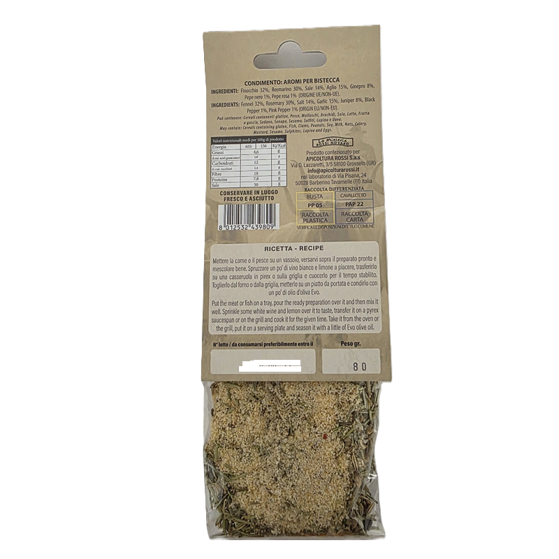 Kromě výběru surovin a čerstvosti přípravků jsou produkty uzavřeny v praktických obalech a ideální pro dochucení receptů a kompozic. Tyto směsi mají chuť a vůni Toskánska a jsou typické pro středomořskou kuchyni.