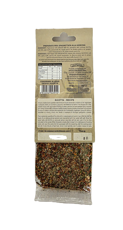 Směs koření na těstoviny Norcina s lanýžem - nová vylepšená receptura Naše směsi jsou dotekem magie!La Mieleria Rossi Novaro nabízí různé druhy koření, které js…