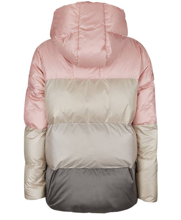 Štvorfarebná, kvalitná mestská bunda Victim od značky Sportalm. Povrch bundy je vodeodolný a izoláciu tvorí pravé perie a páperie, vďaka čomu má bunda skvelé termoizolačné vlastnosti a udrží vás v suchu. Skvelo padnúci strih s hravými farbami dodajú nositeľke štýl. Zapínanie bundy je prekryté, vďaka čomu voda ani zima nepresakujú dovnútra pod bundu. Bunda sa zapína na zips. Kapucňa je pevná, nenastaviteľná, špeciálne navrhnutá tak, aby nositeľke zakryla celú oblasť vlasov.