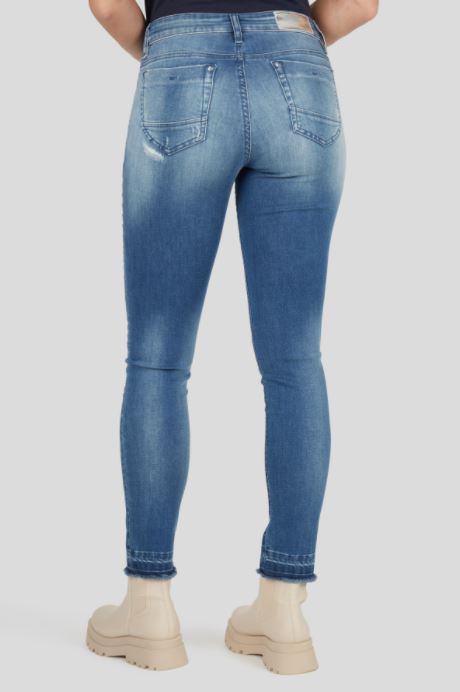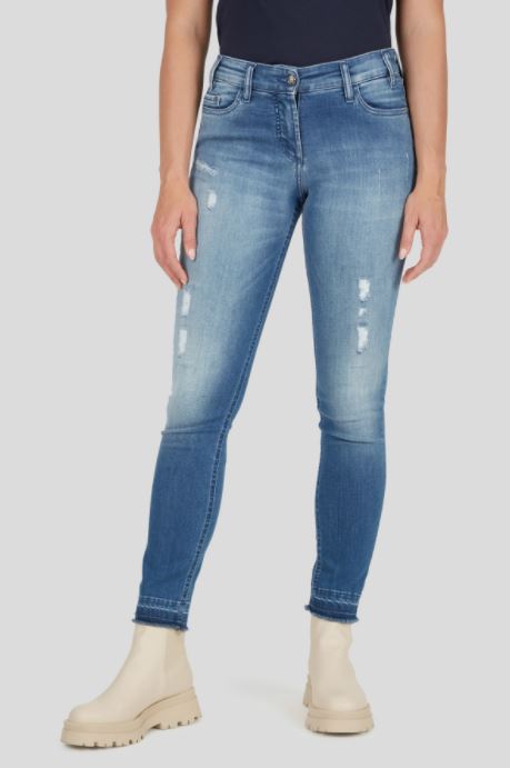 Super štíhle, super sexi a super módne – to všetko platí pre tieto džínsy s piatimi vreckami. Dizajn džínsov je obohatený o štylistické doplnky otrhania a prania na stehnách. Tieto doplnky zabezpečujú rifliam ležérny vzhľad. Príjemná elastická džínsovina zaručuje pohodlné nosenie a dokonale prilieha k telu. Lem má módny strapcový efekt. Džínsový štítok Sportalm a gombíky na džínsoch s logom Sportalm dotvárajú vysokokvalitný vzhľad.