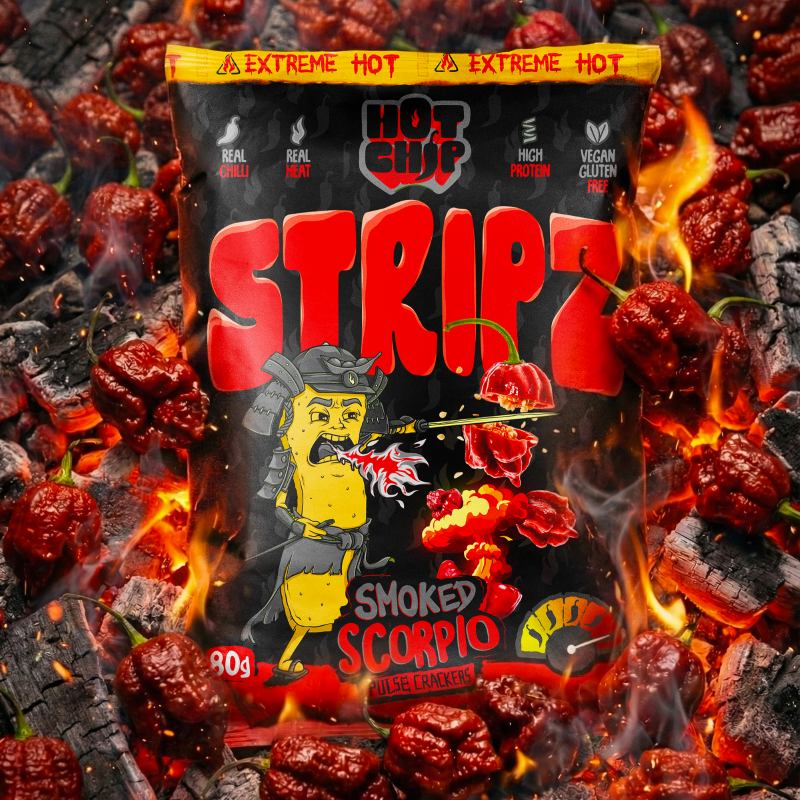 Hledáte snack, který má skutečné grády? Naše luštěninové stripsy s obávanou papričkou Trinidad Moruga Scorpion (80 000 SHU) a uzeným jalapeño nejsou pro slabé povahy. Dodají vám pořádnou porci bílkovin bez zbytečných konzervantů a lepku. 100% veganské, 100% návykové.