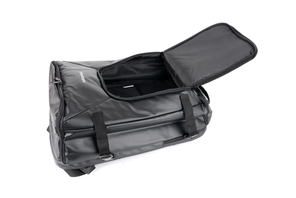 Nechybí samostatná kapsa na obuv, která izoluje zápach a vlhkost, stejně jako polstrovaná kapsa na notebook s fixačním popruhem a vyztuženým dnem – ideální pro většinu 15,6” zařízení. Praktické detaily jako organizér na drobnosti, horní poutko na zavěšení či odolný materiál tarpaulin dělají z tohoto batohu skutečně univerzální kousek.