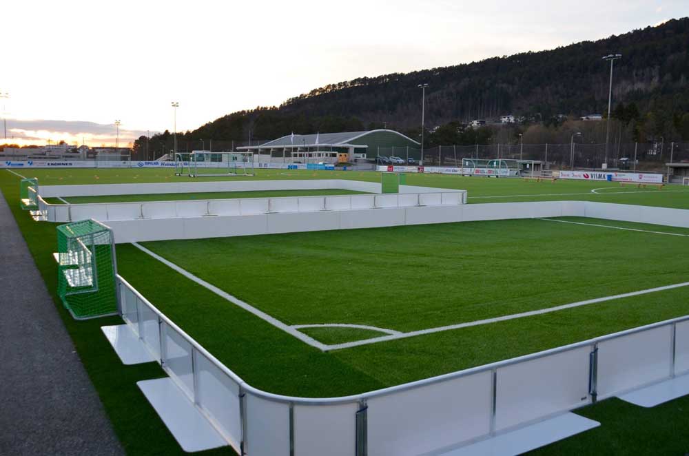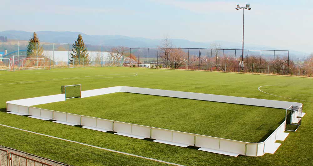 rozměry mantinelového systému jsou 15x11 m, výška je 0,5 m, zaoblené rohy