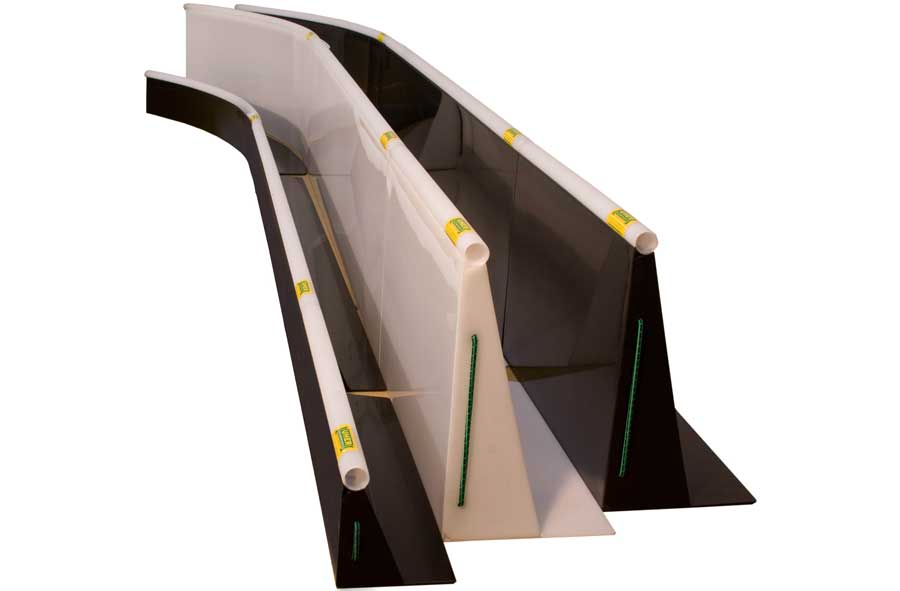 Použití trojúhelníkových žeber přispívá ke zvýšení celkové pevnosti jednotlivých modulů a hlavně zajišťuje striktní udržení úhlu 90 stupňů s hrací plochou. Bez tohoto unikátního trojúhelníkového systému by už po krátké době docházelo k nedodržení pravého úhlu, což by mělo za následek nepříjemné odskakování míčky a také by florbalového mantinely nesplňovaly pravidla IFF.