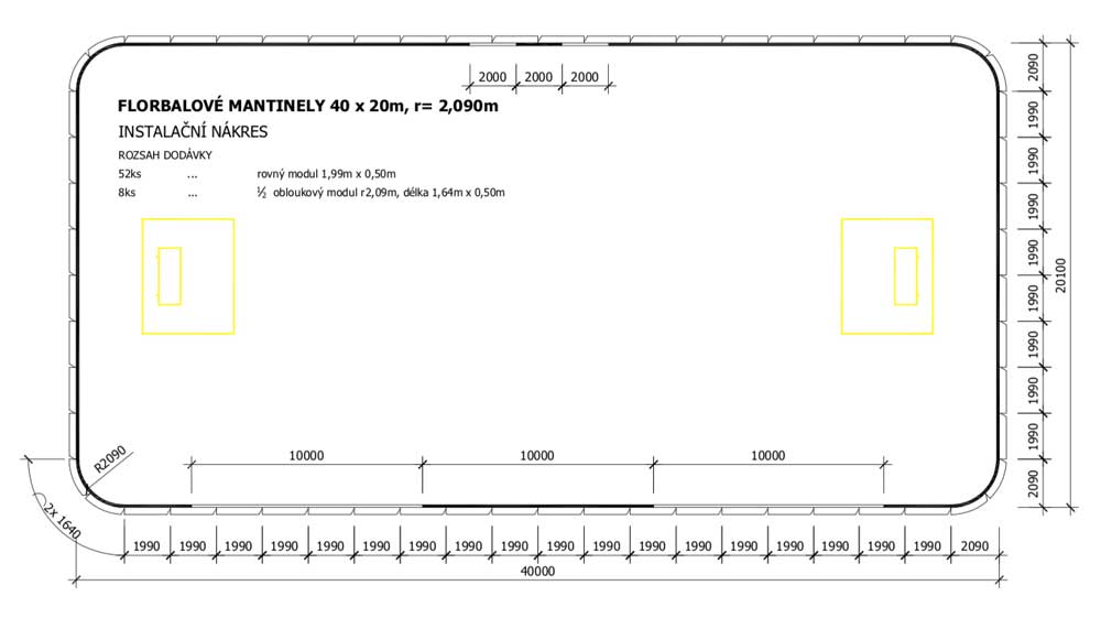UHER IFF florbalové mantinely černá 20 x 10 m