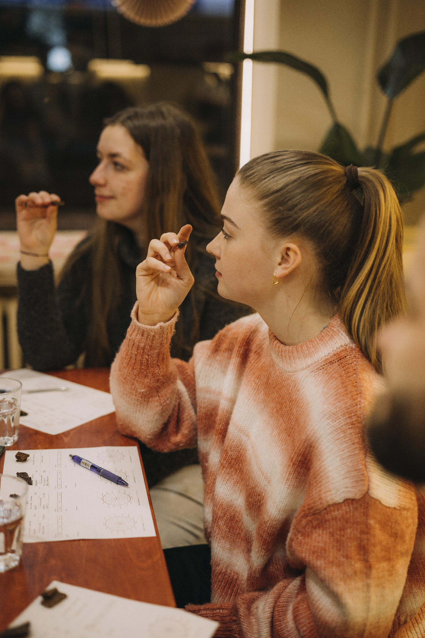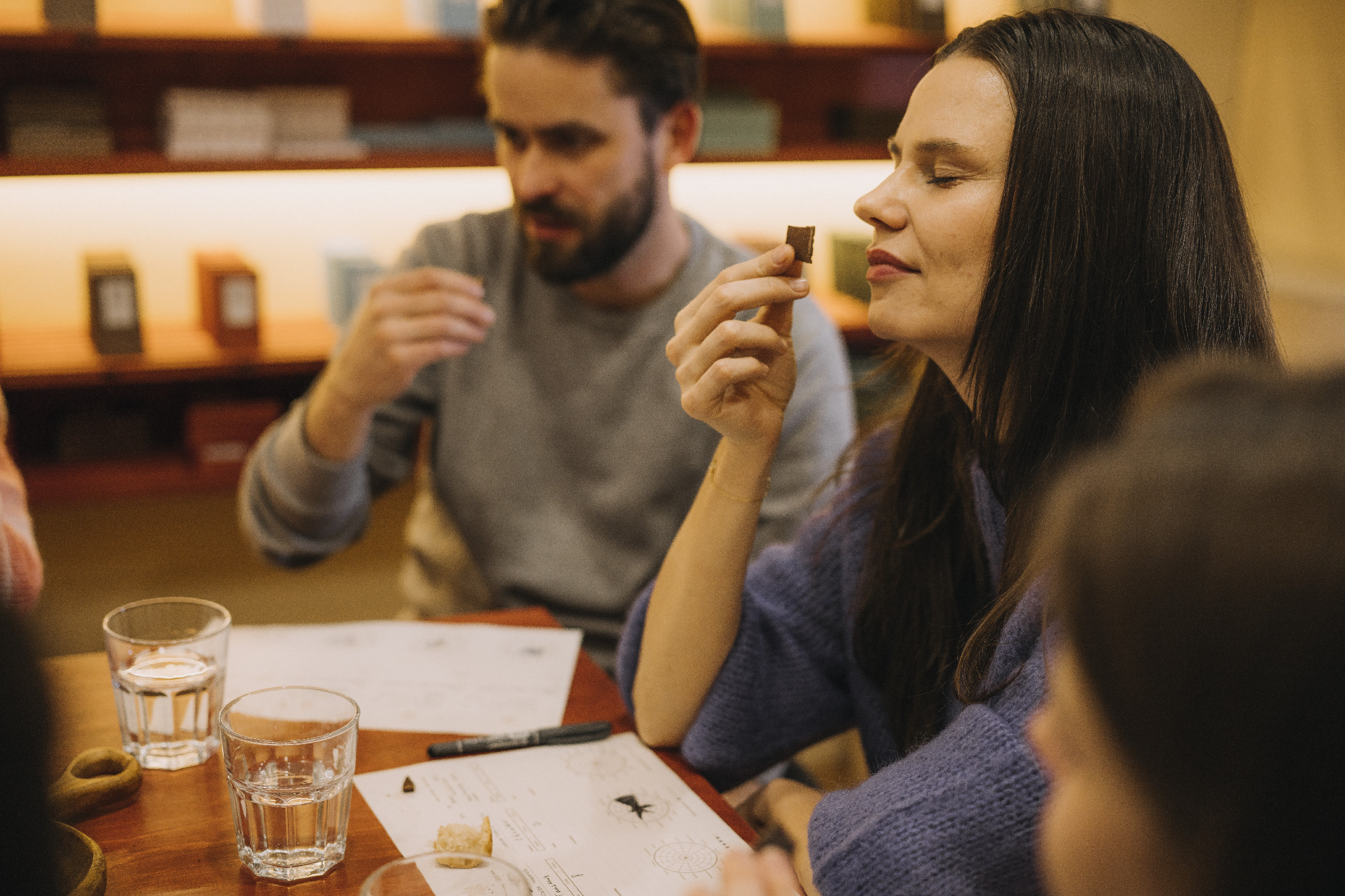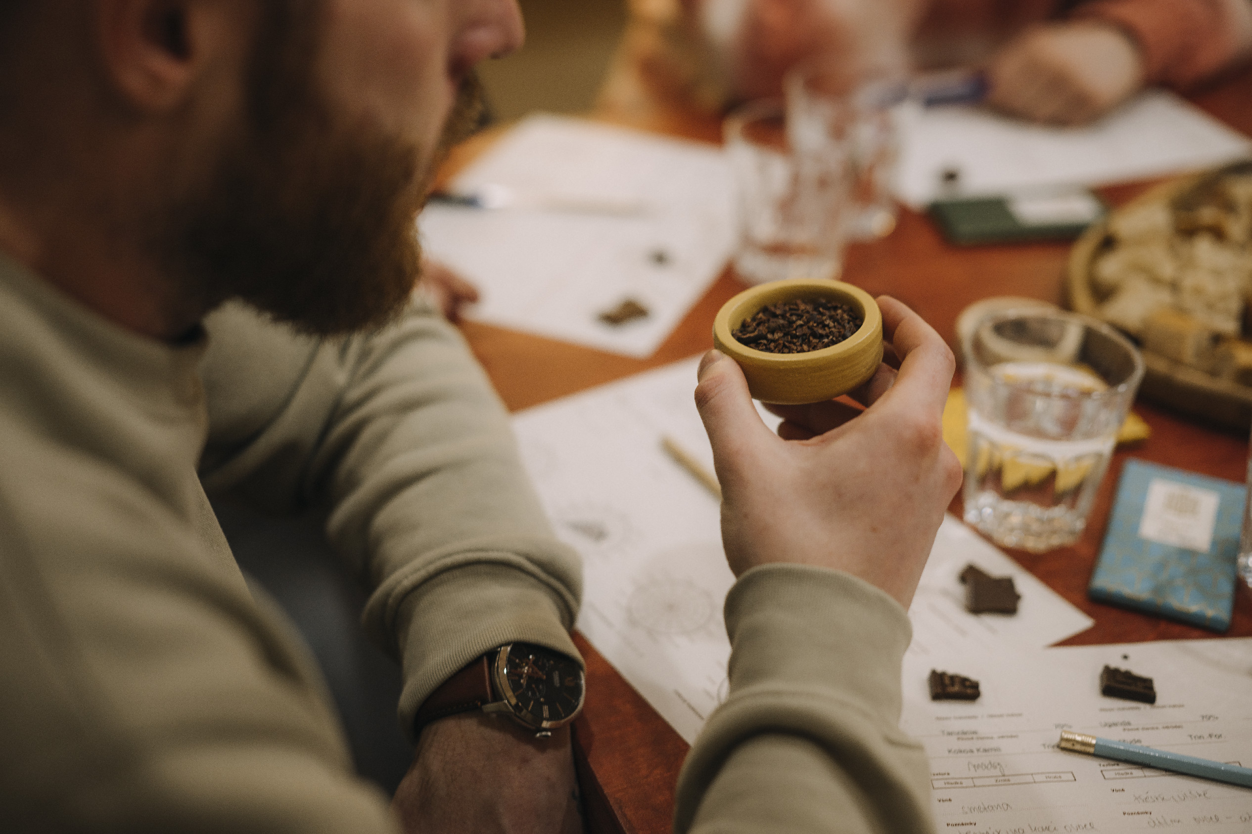 Degustací vás provede naše zkušená kolegyně Emma, která letos složila zkoušky Level 1&2 Certificate in Chocolate Tasting prestižního britského institutu IICCT. Ten vzdělává profesionály i nadšence ve světě kvalitní čokolády. Absolventi kurzu získávají hlubší teoretické znalosti o čokoládě a zároveň si pilují své senzorické vnímání. Učí se rozpoznávat kvalitu, identifikovat vady a přesněji pojmenovávat chuťové tóny. Certifikátem se může v České republice pyšnit jen několik málo lidí. Můžete si tam být jisti, že budete během degustace v těch nejlepších rukou.