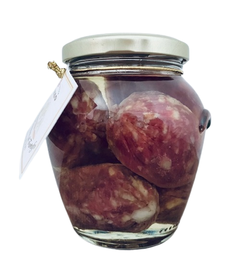 Volba uchování těchto salámků v semenném oleji je dána touhou respektovat a nezměnit chuť hlavní přísady této pochoutky, a to vysoce kvalitního vepřového masa.