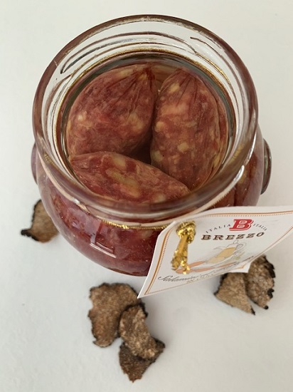 Salámky v oleji s černým lanýžem Volba uchování těchto salámků v semenném oleji je dána touhou respektovat a nezměnit chuť hlavní přísady této pochoutky, a to v…