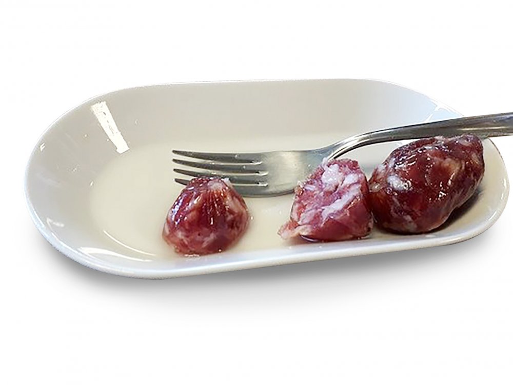Složení: salámky z vepřového masa 52%, sůl, dextróza, lanýž černý letní (Tuber aestivum Vitt.) 1%, lanýžové aroma 0,1%, byliny, E301, E300, E250, E252, slunečnicový olej 48%.