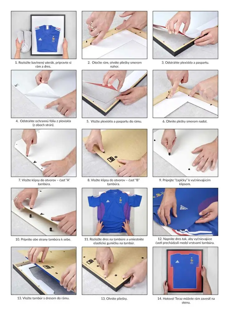 S našimi DIY rámy si můžete rám sestavit sami pomocí našeho patentovaného systému, který připevňuje dresy k rámu.