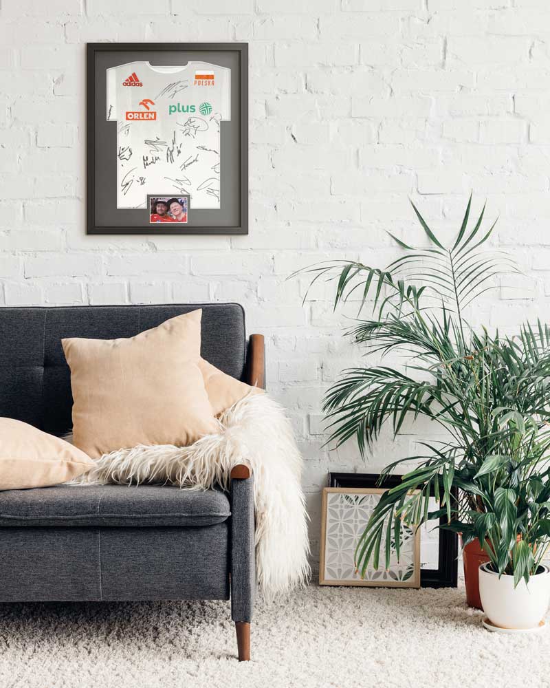 S naším exkluzivním patentovaným systémem montáže můžete snadno a rychle zarámovat dresy od velikosti M po XL.