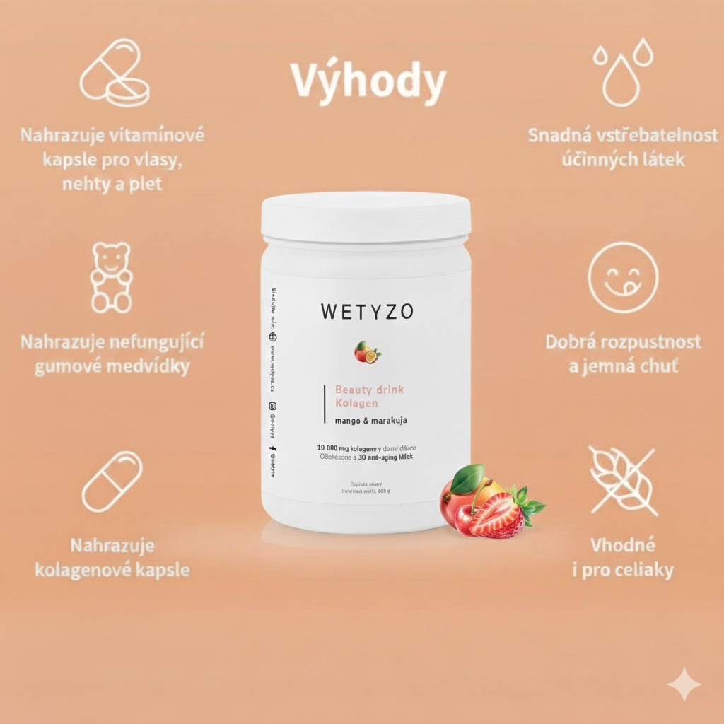 | Vlastnost / Výhoda | Wetyzo kolagen | Konkurence |