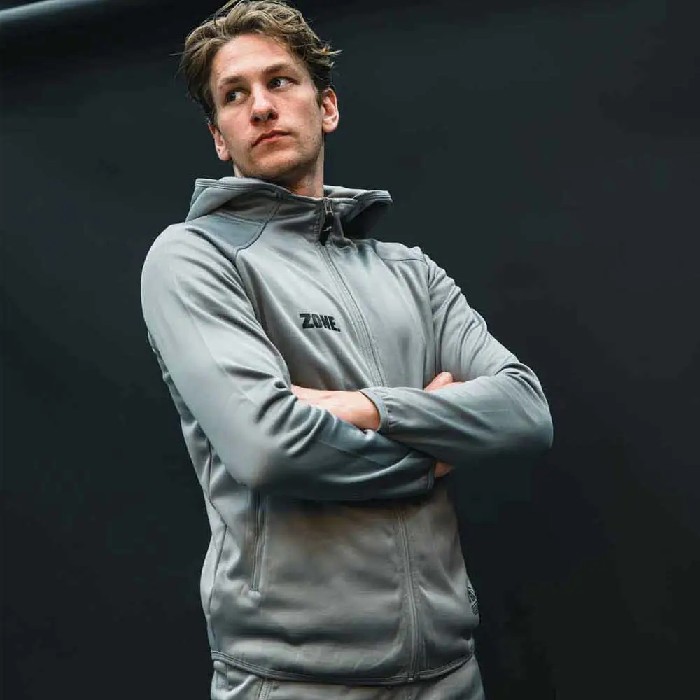 Velice příjemná mikina Zone Hood Zip Modern Grey v prodlouženém užším střihu a unisex designu. Zapínání na zip, kapuce a dvě přední kapsy na zip. Stříbrné reflexní logo Zonefloorball na hrudníku a rameni. Vyrobená je z kvalitního polyesteru, který rychle schne.