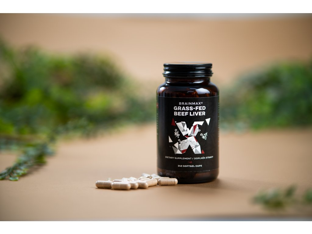 BrainMax Grass-Fed Beef liver, hovězí játra, BIO, 240 kapslí