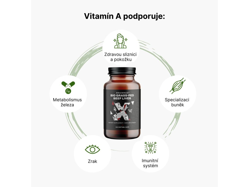 Vitamin A je klíčový pro správné fungování těla. Přispívá k normálnímu metabolismu železa a podporuje udržení zdravých sliznic a pokožky. Dále pomáhá udržet normální stav zraku a normální funkci imunitního systému. Vitamin A se také podílí na procesu specializace buněk, což je důležité pro růst a regeneraci tkání.