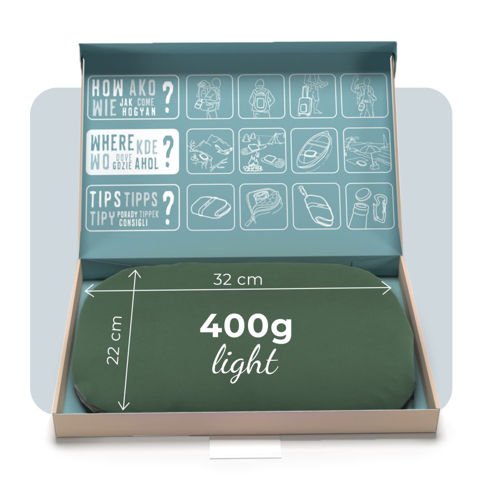 MOSH Kamper Light váží pouze 400 gramů, díky čemuž je až o 55 % lehčí než větší varianta Kamperu. Kompaktnější verze je ideální pro turistiku i kempování. Jednoduše se totiž vejde do batohu, kde zabere minimum místa.