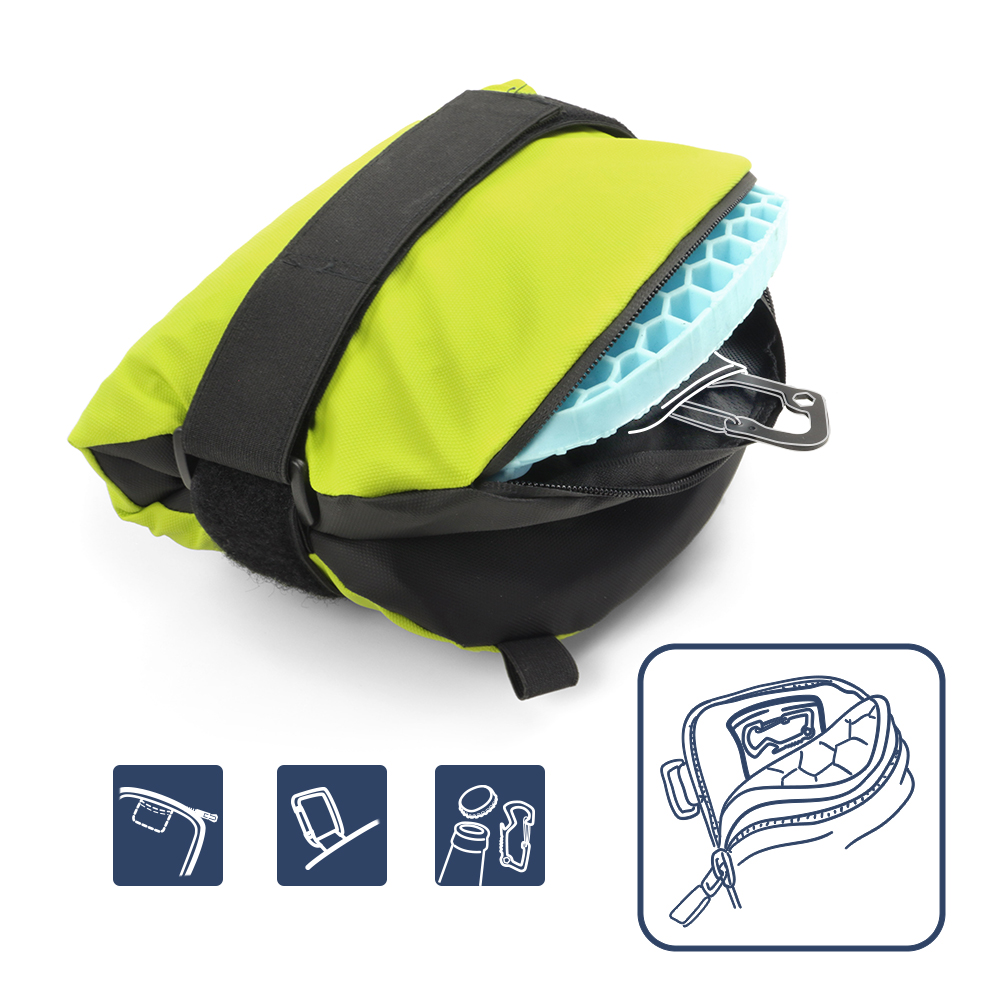 Díky karabince, která je součástí balení, můžete Kamper připevnit k opasku nebo batohu a velmi snadno přenášet. Karabinku s otvírákem na láhve oceníte i když budete chtít uhasit žízeň. Podsedák je užitečnou pomůckou i pro fanoušky různých sportovních akcí či festivalů, které vyžadují sezení na chladných površích.