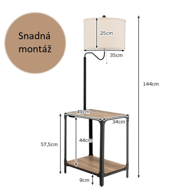 Tento kousek nábytku má design 2v1 - odkládací stolek a lampa, což maximalizuje prostor ve vaší místnosti. Odkládací stolek má dvě police, které poskytují mnoho…