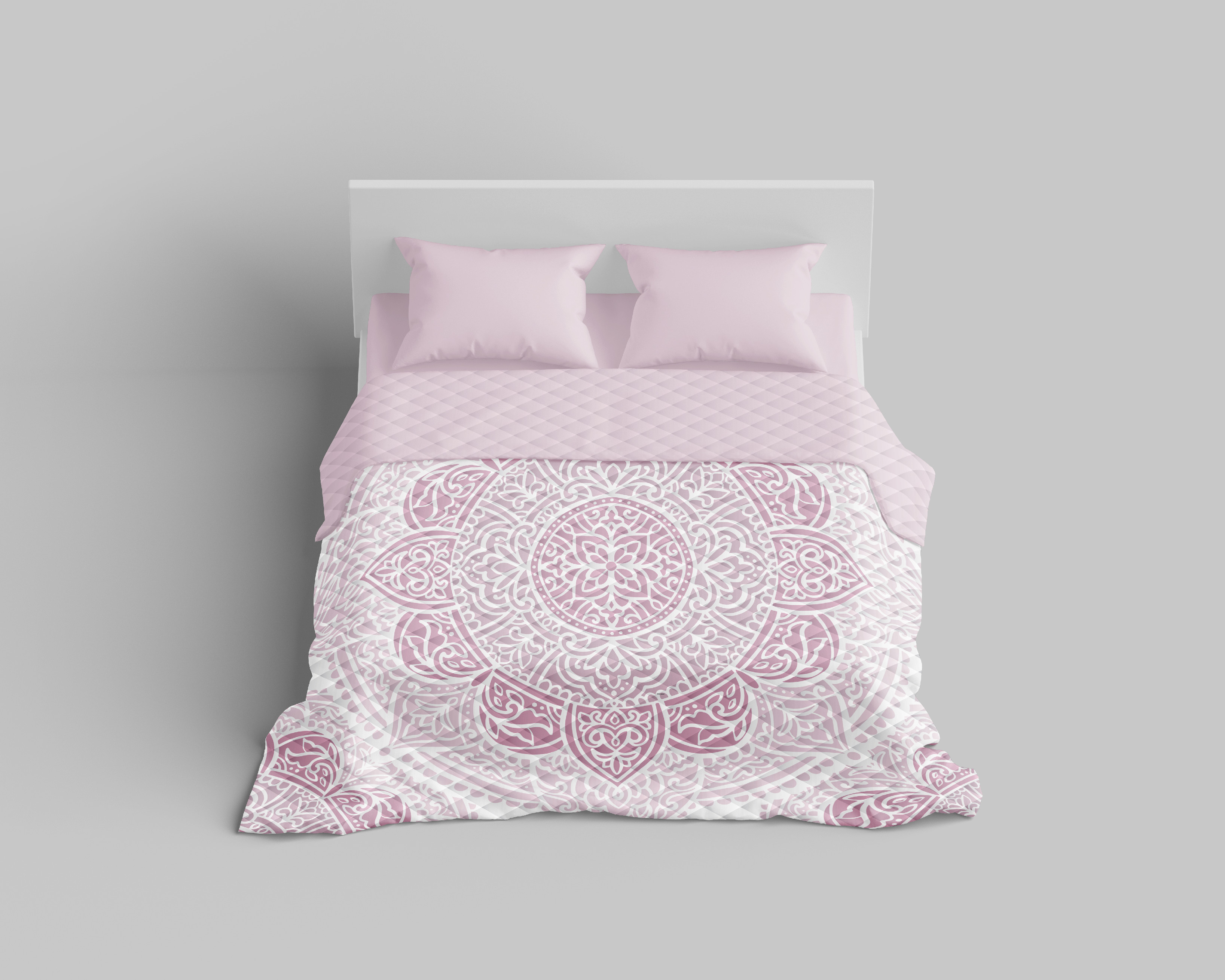 Přední strana je ve světle růžové barvě s motivem mandaly, zadní strana přehozu je světle růžová – dohromady tak perfektně dotváří atmosféru pokoje. Rozměr 220×240 cm padne na většinu dvojlůžek.