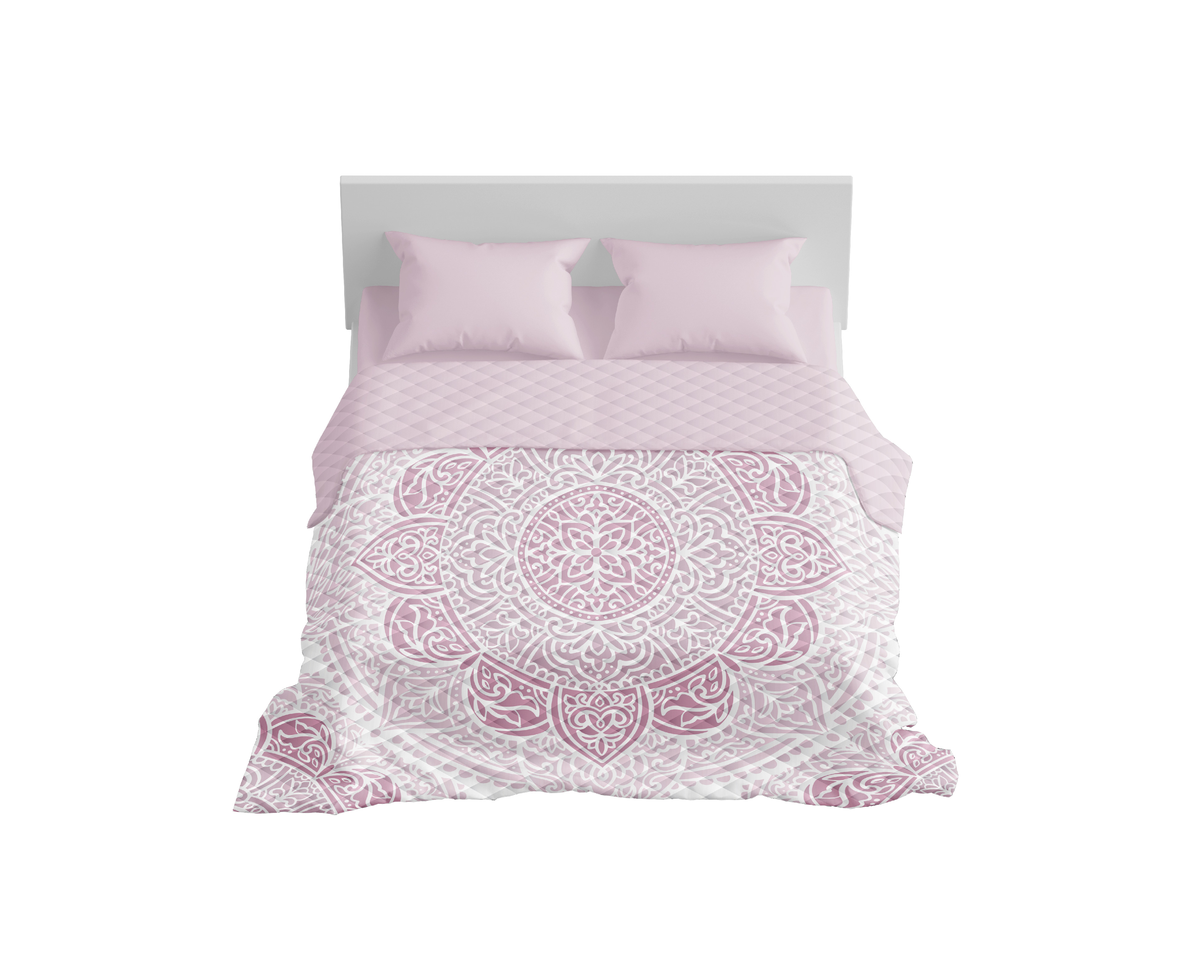 Stylový a praktický přehoz s moderním designem se skvěle hodí do ložnice a dodá jí styl a eleganci. Přední strana je ve světle růžové barvě s motivem mandaly, z…
