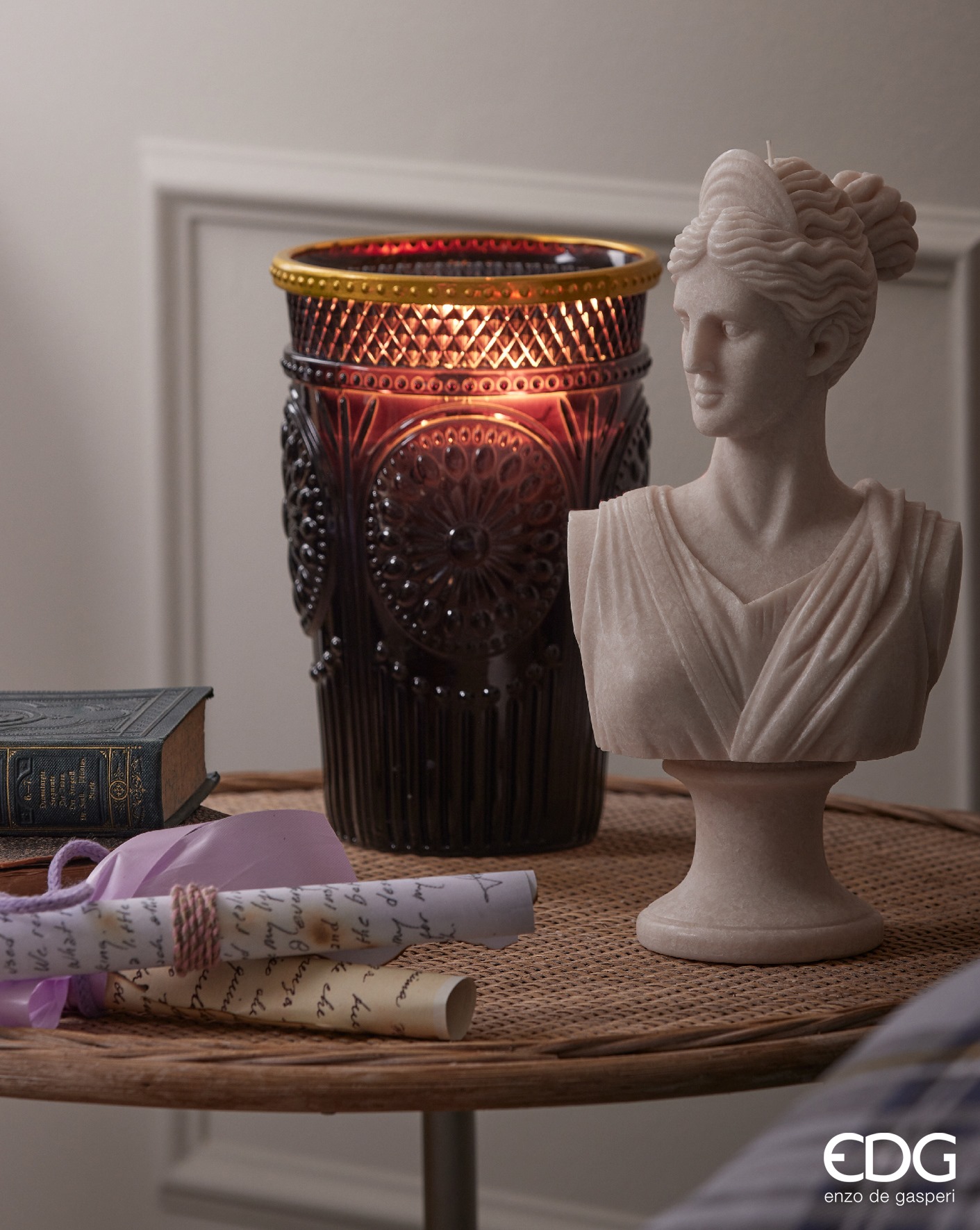 Stylově zdobená luxusní svíčka ve vysoké váze z černého skla. Elegantní broušený dekor se zlatým okrajem. Zajímavý interiérový prvek. Po vypálení svíčky můžete …