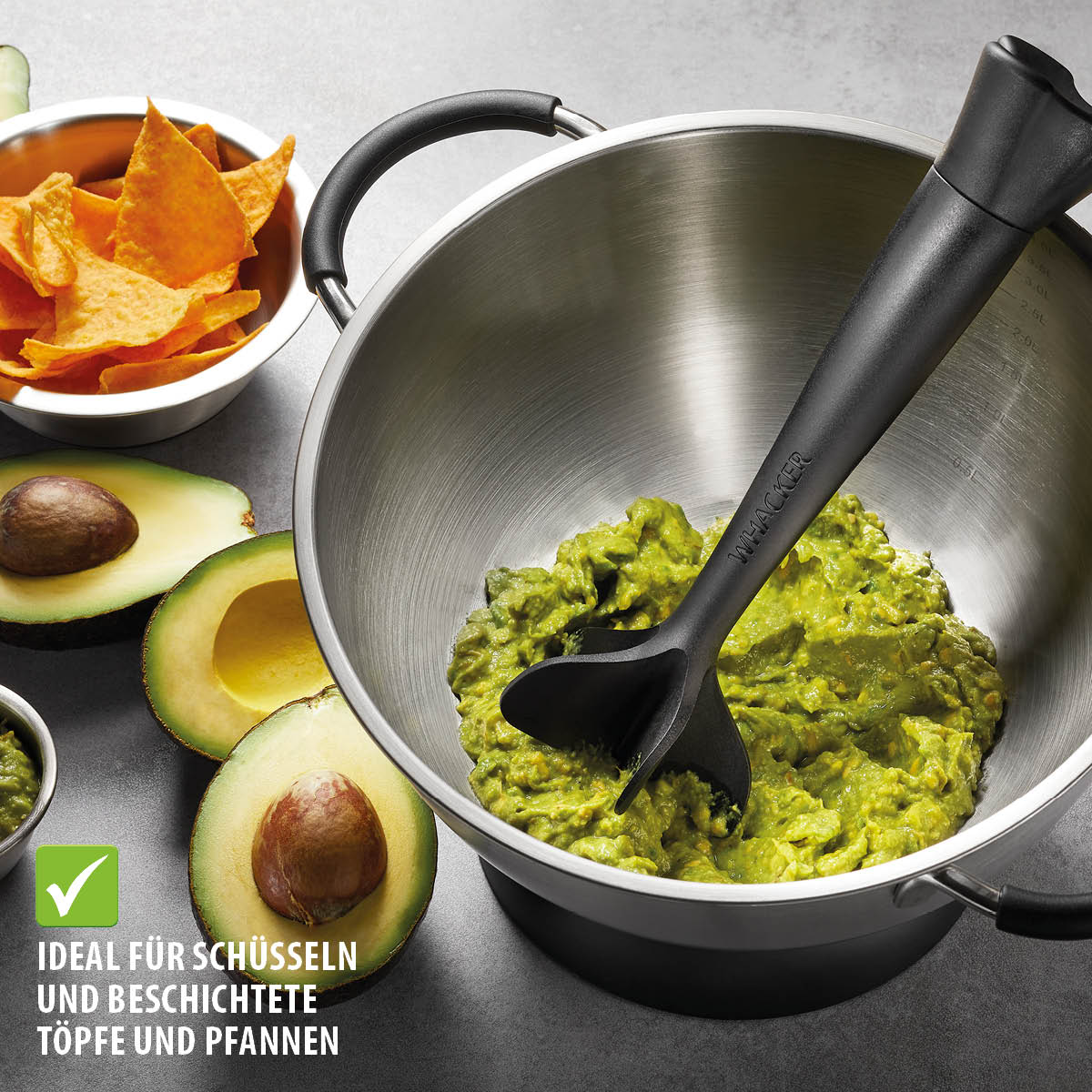 Zdlouhavé drobení mletého masa v hrncích a pánvích je nyní minulostí. Kuchyňský pomocník WHACKER je navržen pro efektivní drcení a míchání surovin přímo během vaření. Díky svému tvaru umožňuje rovnoměrné zpracování bez poškození povrchové úpravy nádobí.